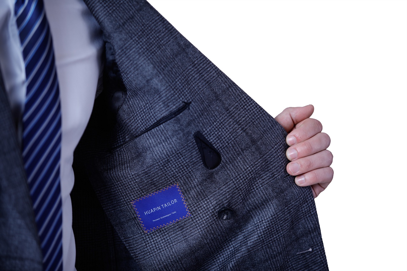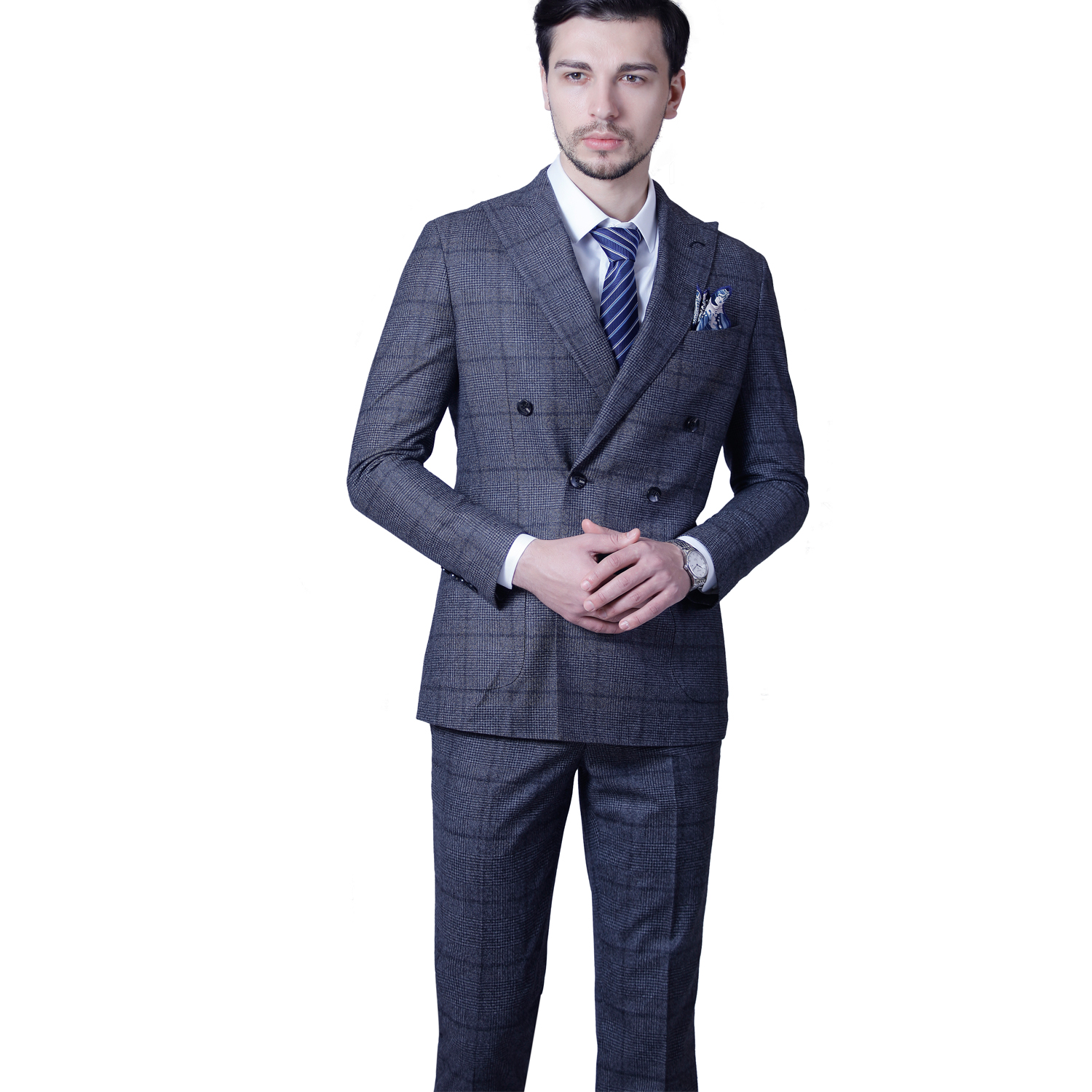 Made to measure service big lapel 100% wool plaid dark grey fabric full bespoke slim suits men